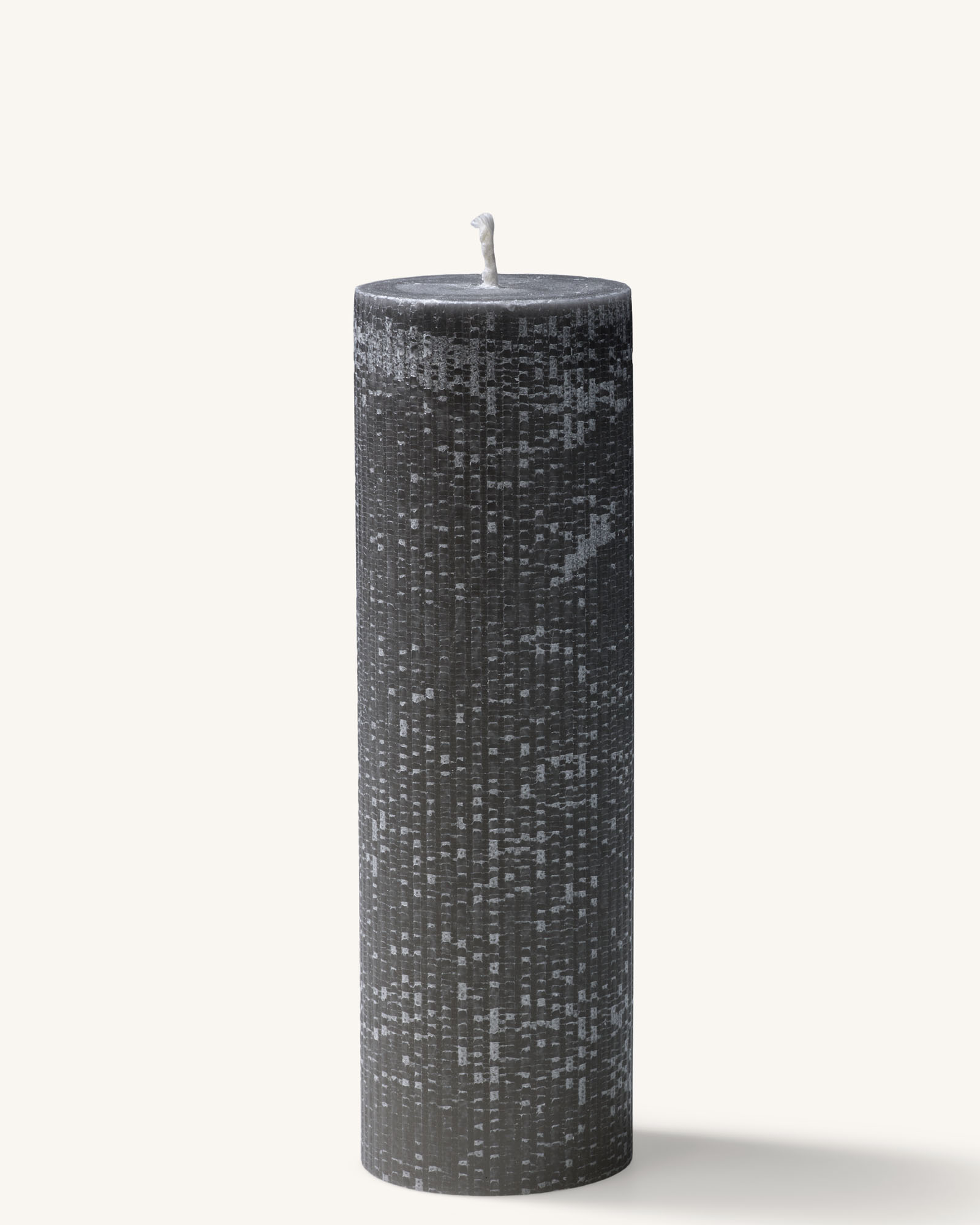 Ronde kaars (100% stearine) met ribbelstructuur verticaal rondom, maakt ook uniek kantwerk aan buitenkant tijdens het branden.