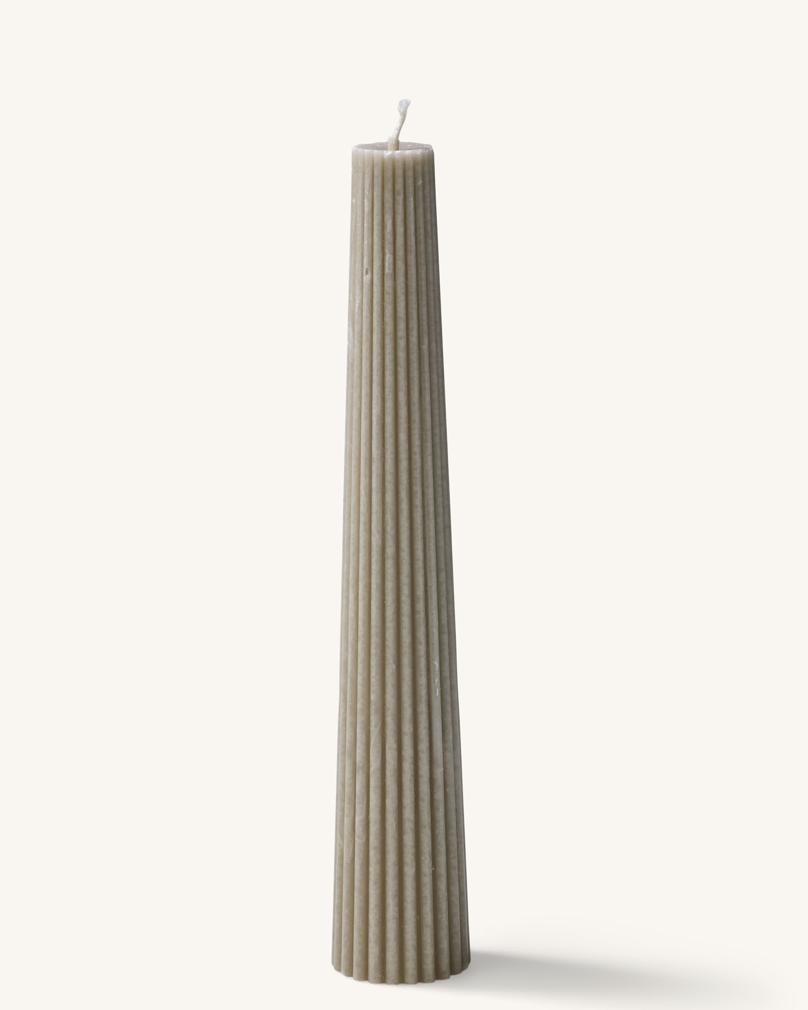 Ronde kaars (100% stearine) met ribbelstructuur verticaal rondom, maakt unieke pieken aan de buitenkant.