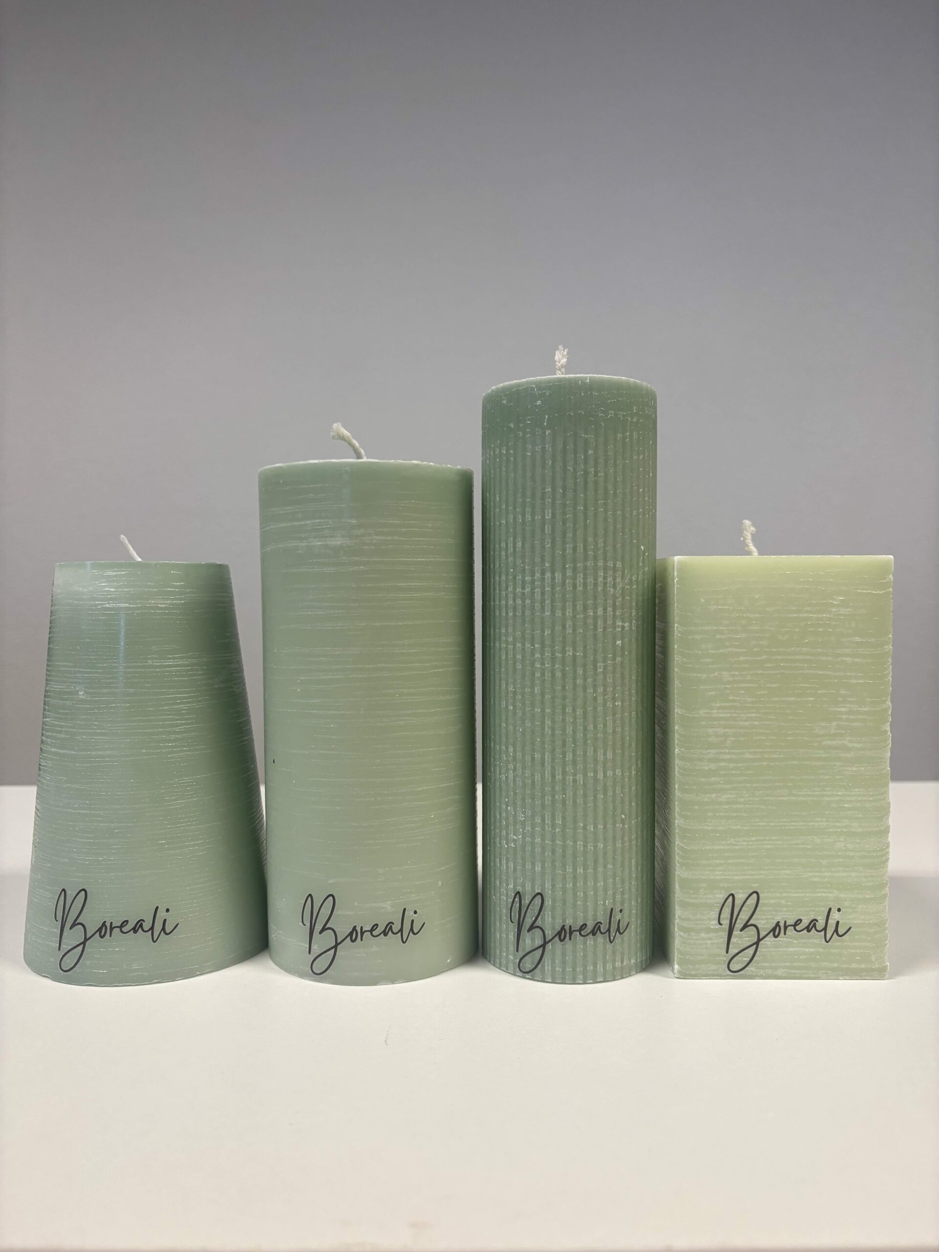 Prachtige en stijlvolle cadeauset: vierkante groene polar kaars (40 branduren) & ronde groene frozen kaars (60 branduren) & ronde groene artic dream kaars (40 branduren) en kegelvormige groene mystic kaars (40 branduren). Alle kaarsen maken uniek kantwerk tijdens het branden.