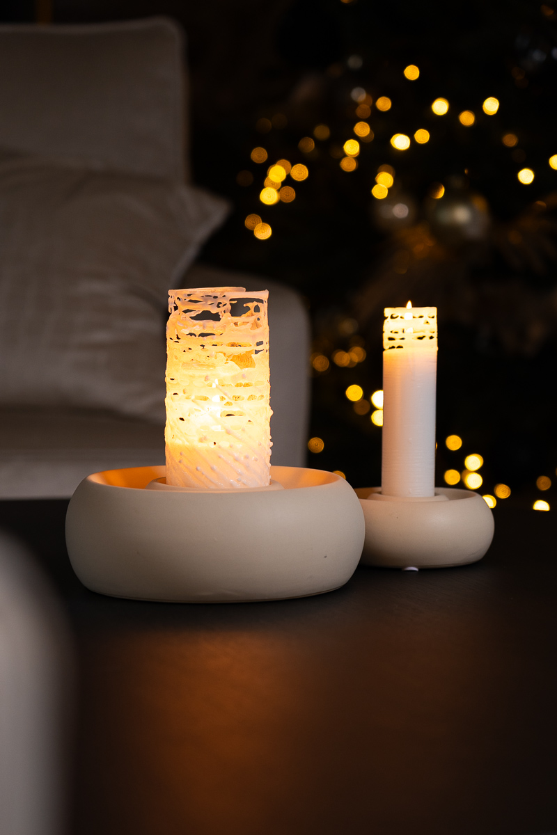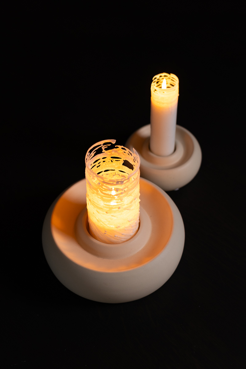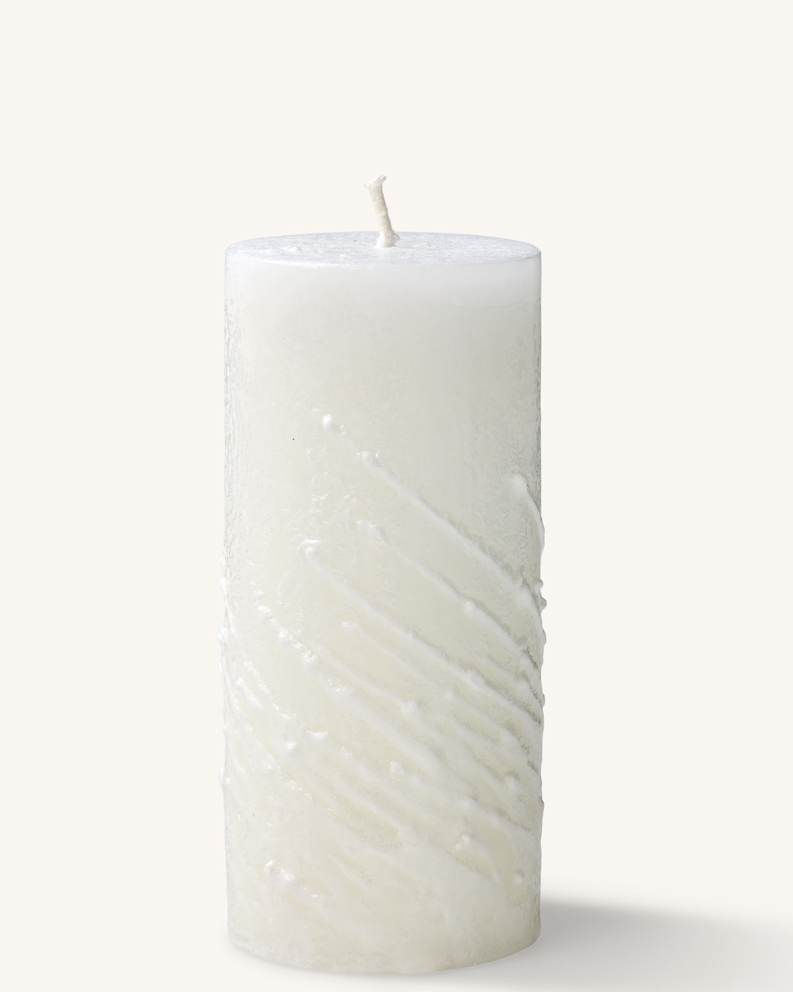 Ronde kaars (100% stearine) voorzien van witte schuine stearine strepen, maakt ook uniek kantwerk aan buitenkant tijdens het branden. Een echte eyecatcher….